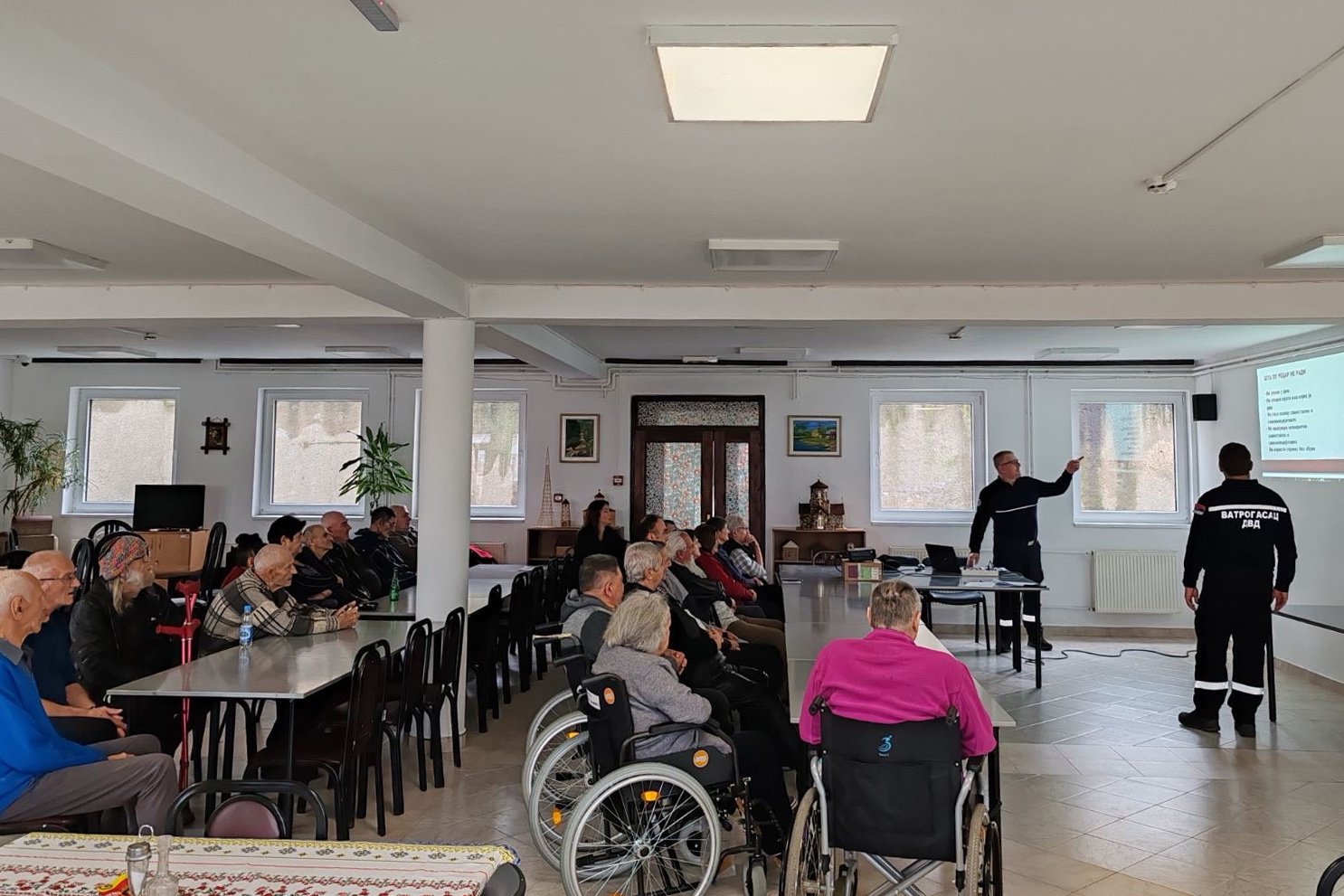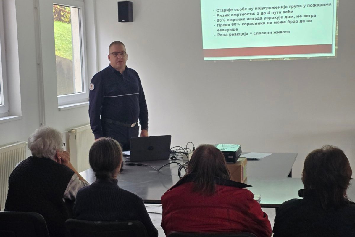 Током интерактивног предавања корисници су се упознали са најчешћим узроцима пожара у установама за старе, правилним понашањем у условима дима, као и улогом “ПП редара” односно корисника који могу допринети раном уочавању ризика и благовременом обавештавању особља.